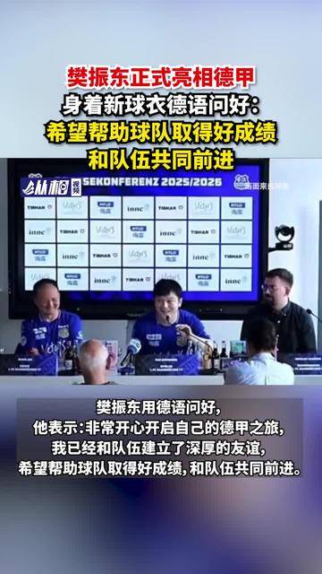 樊振东正式亮相德甲,身着新球衣德语问好:希望帮助球队取得好成绩,和队伍共同前进